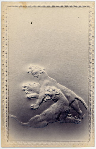 明治末期から大正期には、社会を滑稽に風刺した漫画雑誌が評判をとり、描かれる対象や意匠化のアイデアも非常に多彩。日本初の職業漫画家・北沢楽天が活躍し、彼の創刊したカラー漫画雑誌も人気を博しました。虎のイラストにも、ユーモラスな表情を戯画タッチで描き出したものが目立つようになります。